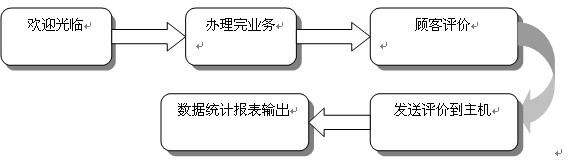 整個(gè)系統(tǒng)由前臺(tái)評(píng)價(jià)設(shè)備、無線通訊控制器及服務(wù)端的網(wǎng)點(diǎn)統(tǒng)計(jì)監(jiān)控軟件和評(píng)價(jià)管理軟件組成。系統(tǒng)實(shí)現(xiàn)功能的流程:
